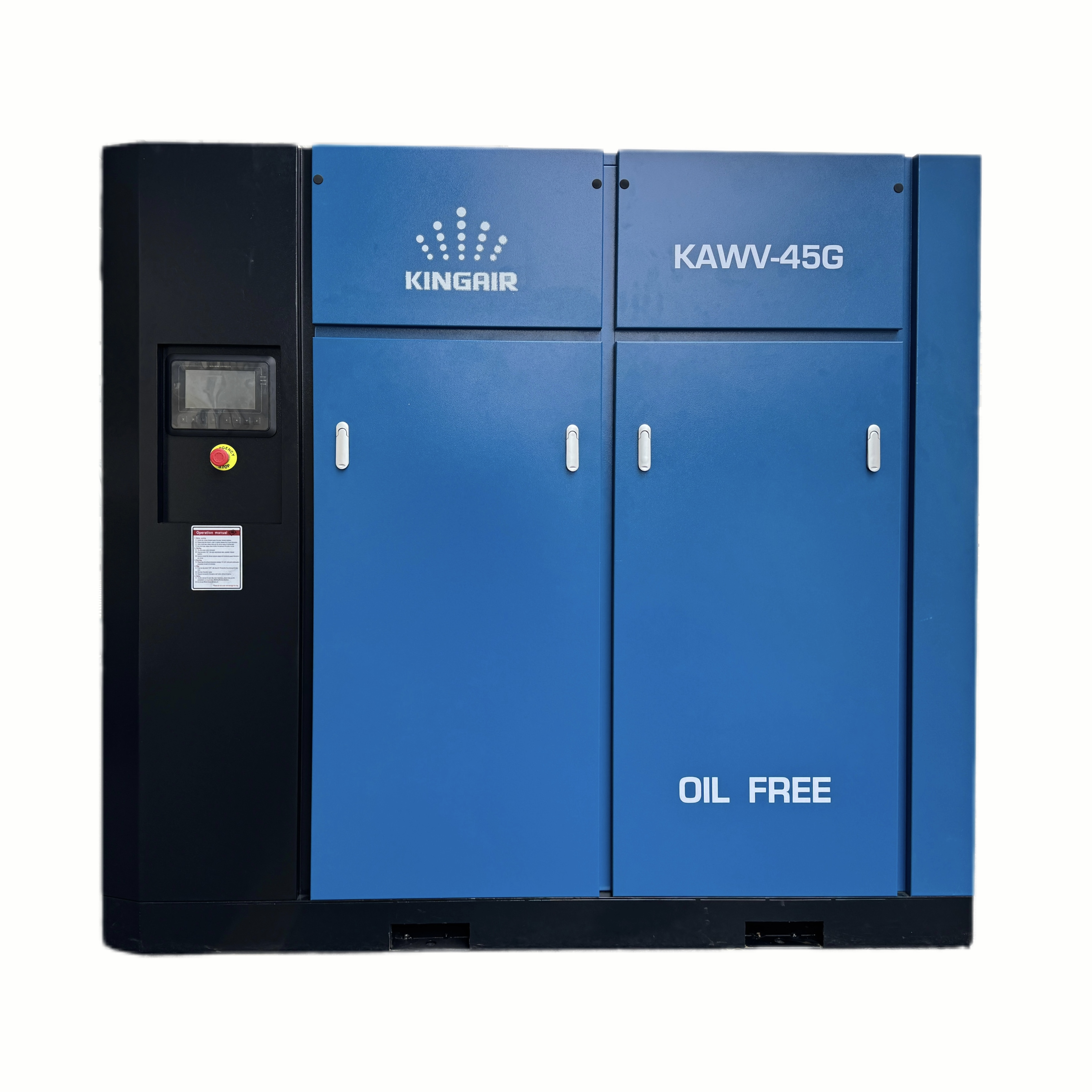 The product is filled with compressor oil before leaving the factory, and can be put into operation after being installed in place and connected to the power supply. The LCD screen has its own backlight to clearly display the machine's operating status.