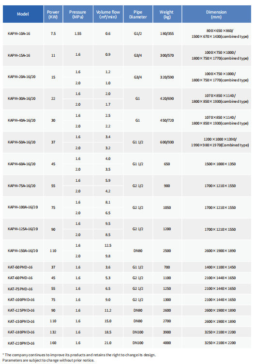 Vertebral shaft mainframe, easy to disassemble, without self-equipped gas storage tank, cold dryer, filter, etc., no need to take over, one machine one station integration.