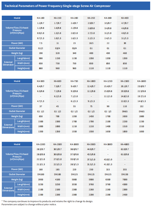 Low Pressure Single-stage PM VFD Screw Air Compressor