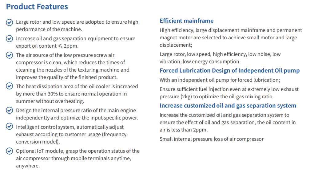 Low Pressure Single-stage PM VFD Screw Air Compressor